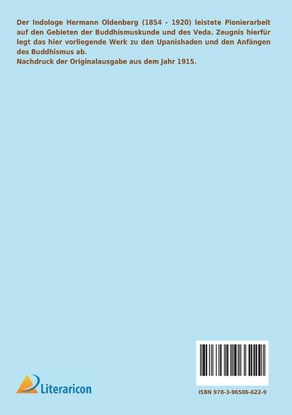 Der Indologe Hermann Oldenberg (1854 - 1920) leistete Pionierarbeit auf den Gebieten der Buddhismuskunde und des Veda. Zeugnis hierfür legt das hier vorliegende Werk zu den Upanishaden und den Anfängen des Buddhismus ab. Nachdruck der Originalausgabe aus dem Jahr 1915.