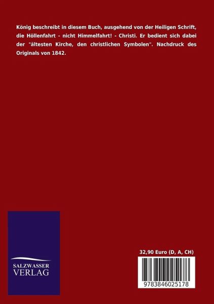 König beschreibt in diesem Buch, ausgehend von der Heiligen Schrift, die Höllenfahrt - nicht Himmelfahrt! - Christi. Er bedient sich dabei der "ältesten Kirche, den christlichen Symbolen". Nachdruck des Originals von 1842.