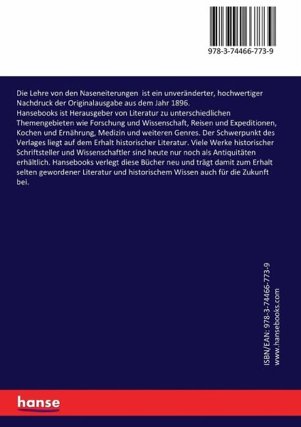 Die Lehre von den Naseneiterungen ist ein unveränderter, hochwertiger Nachdruck der Originalausgabe aus dem Jahr 1896.