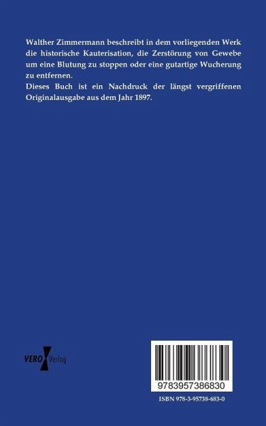 Walther Zimmermann beschreibt in dem vorliegenden Werk die historische Kauterisation, die Zerstörung von Gewebe um eine Blutung zu stoppen oder eine gutartige Wucherung zu entfernen. Dieses Buch ist ein Nachdruck der längst vergriffenen Originalausgabe aus dem Jahr 1897.