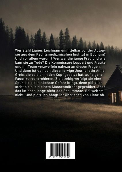 Die Studentin und Aushilfskellnerin Liane findet sich, ohne Erinnerung an die letzten Stunden in einer Sackgasse in Bochum abgelegt, wieder. Nur widerstrebend lässt sie den Gedanken zu, dass sie anscheinend ermordet wurde. Kurz vor der Obduktion wird ihr Körper aus dem Kriminalpathologischen Institut entführt. Die scheinbar sinnlose Tat stürzt den Polizeiapparat in hektische Betriebsamkeit, aber die Leiche wird nicht gefunden. Die Kriminalbeamten Luppert und Frauke stürzen sich verbissen in die Suche nach dem Mörder, der sie mehrfach auf falsche Fährten führt. Mit ihren ganz eigenen Methoden sucht auch die aufstrebende Journalistin Anne Greis nach dem Mörder. Sie ist es auch, die als Erste entdeckt, dass es sich um einen Serienmörder handelt. Soll sie den sympathischen Frauke einweihen oder auf eigene Faust handeln?