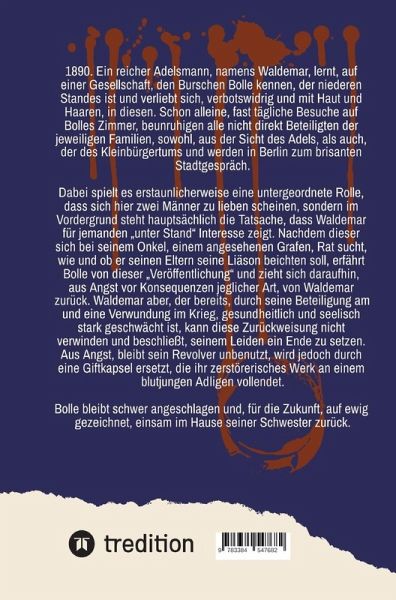 Ein reicher Adelsmann namens Waldemar lernt auf einer Gesellschaft den Burschen Bolle kennen, der niederen Standes ist, und verliebt sich verbotswidrig und mit Haut und Haaren in diesen. Schon alleine fast tägliche Besuche auf Bolles Zimmer beunruhigen alle nicht direkt Beteiligten der jeweiligen Familien, sowohl aus der Sicht des Adels als auch der des Kleinbürgertums, und werden in Berlin zum brisanten Stadtgespräch. Dabei spielt es erstaunlicherweise eine untergeordnete Rolle, dass sich hier zwei Männer zu lieben scheinen, sondern im Vordergrund steht hauptsächlich die Tatsache, dass Waldemar für jemanden "unter Stand" Interesse zeigt. Nachdem dieser sich bei seinem Onkel, einem angesehenen Grafen, Rat sucht, wie und ob er seinen Eltern seine Liäson beichten soll, erfährt Bolle von dieser "Veröffentlichung" und zieht sich daraufhin aus Angst vor Konsequenzen jeglicher Art von Waldemar zurück. Waldemar aber, der bereits durch seine Beteiligung am Krieg und eine dadurch erlittene Verwundung gesundheitlich und seelisch stark geschwächt ist, kann diese Zurückweisung nicht verwinden und beschließt, seinem Leiden ein Ende zu setzen. Aus Angst bleibt sein Revolver unbenutzt, wird jedoch durch eine Giftkapsel ersetzt, die ihr zerstörerisches Werk an einem blutjungen Adligen vollendet. Bolle bleibt schwer angeschlagen und für die Zukunft auf ewig gezeichnet, einsam im Hause seiner Schwester zurück.