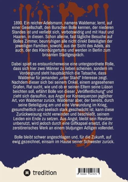 Ein reicher Adelsmann namens Waldemar lernt auf einer Gesellschaft den Burschen Bolle kennen, der niederen Standes ist, und verliebt sich verbotswidrig und mit Haut und Haaren in diesen. Schon alleine fast tägliche Besuche auf Bolles Zimmer beunruhigen alle nicht direkt Beteiligten der jeweiligen Familien, sowohl aus der Sicht des Adels als auch der des Kleinbürgertums, und werden in Berlin zum brisanten Stadtgespräch. Dabei spielt es erstaunlicherweise eine untergeordnete Rolle, dass sich hier zwei Männer zu lieben scheinen, sondern im Vordergrund steht hauptsächlich die Tatsache, dass Waldemar für jemanden "unter Stand" Interesse zeigt. Nachdem dieser sich bei seinem Onkel, einem angesehenen Grafen, Rat sucht, wie und ob er seinen Eltern seine Liäson beichten soll, erfährt Bolle von dieser "Veröffentlichung" und zieht sich daraufhin aus Angst vor Konsequenzen jeglicher Art von Waldemar zurück. Waldemar aber, der bereits durch seine Beteiligung am Krieg und eine dadurch erlittene Verwundung gesundheitlich und seelisch stark geschwächt ist, kann diese Zurückweisung nicht verwinden und beschließt, seinem Leiden ein Ende zu setzen. Aus Angst bleibt sein Revolver unbenutzt, wird jedoch durch eine Giftkapsel ersetzt, die ihr zerstörerisches Werk an einem blutjungen Adligen vollendet. Bolle bleibt schwer angeschlagen und für die Zukunft auf ewig gezeichnet, einsam im Hause seiner Schwester zurück.