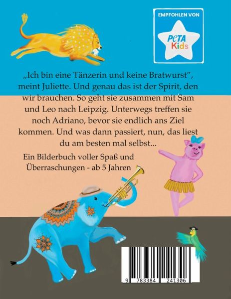 Über das Buch:Mit unserem von PETA-Kids als besonders wertvoll ausgezeichneten Buch "Die Leipziger Stadtmusikanten" schlagen wir eine Brücke zwischen Tradition und Zukunft. Dabei vermittelt das Buch ein offenes und achtsames Weltbild, in dem jedes Leben einen Wert hat, unabhängig von Hautfarbe, Herkunft oder Geschlecht.Darüber hinaus wird in dem Buch auf kindgerechter Weise über Nachhaltigkeit, Diversität, Gleichberechtigung und die Würde des Lebens gesprochen und den Kindern und Eltern so die Möglichkeit gegeben, anhand der Geschichte zusammen ihre Meinung zu diesen wichtigen Themen zu bilden. Zielgruppe:Das Buch ist für alle Kinder ab 5 Jahren geeignet, aber auch für jeden Erwachsene ein großer Spaß, der Lust hat, die vermeintlich bekannte Geschichte neu zu entdecken.Die Charaktere:Wie in dem bekannten Klassiker laden auch hier vier Freunde den jungen Leser ein, sie auf einem spannenden Abenteuer zu begleiten. Dabei sind sie Charaktere: Samy der Elefant, der zu Beginn der Geschichte im Dresdner Zoo lebt, aber davon träumt, Musiker zu sein.Leo, der Löwe, der vorher in einem Zirkus aufgetreten ist, und sich nun Samy auf seiner Reise anschließt.Juilette, das Schweinchen, dass eine Tänzerin ist. Sie ist eigentlich auf dem Weg nach Berlin, als sie Samy und Leo trifft, und die beiden dann doch nach Leipzig begleitet.Adriano, der Papagei, ein bunter Vogel mit einer bewegten Vergangenheit, der das Quartett vervollständigt.Eine machbare Utopie - bestärkend und inspirierendWir verzichten bei den "Leipziger Stadtmusikanten" bewusst auf die Darstellung von Gewalt. So müssen die vier Freunde dieses Mal nicht um ihr neues Zuhause kämpfen.Stattdessen finden sie in Leipzig eine leerstehende und verfallene Fabrik, die sie mit tollen Ideen, Einsatz und einer großen Portion Mut zu einem soziokulturellen Center und Nachbarschaftstreff mit Workshops, Musik, Permakultur-Gemeinschaftsgärten und Begegnungsräumen umwandeln.Damit ermutigt die Geschichte die jungen Leser zusätzlich, an ihre Träume und Hoffnungen zu glauben und sich für diese Einzusetzen.