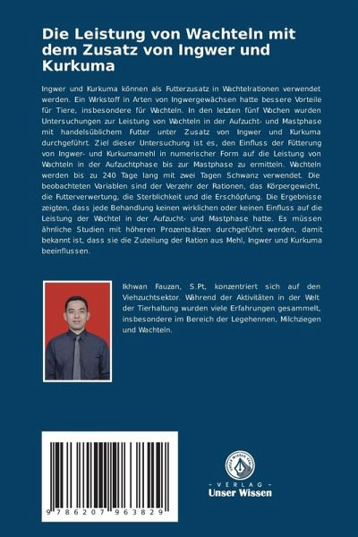 Ingwer und Kurkuma können als Futterzusatz in Wachtelrationen verwendet werden. Ein Wirkstoff in Arten von Ingwergewächsen hatte bessere Vorteile für Tiere, insbesondere für Wachteln. In den letzten fünf Wochen wurden Untersuchungen zur Leistung von Wachteln in der Aufzucht- und Mastphase mit handelsüblichem Futter unter Zusatz von Ingwer und Kurkuma durchgeführt. Ziel dieser Untersuchung ist es, den Einfluss der Fütterung von Ingwer- und Kurkumamehl in numerischer Form auf die Leistung von Wachteln in der Aufzuchtphase bis zur Mastphase zu ermitteln. Wachteln werden bis zu 240 Tage lang mit zwei Tagen Schwanz verwendet. Die beobachteten Variablen sind der Verzehr der Rationen, das Körpergewicht, die Futterverwertung, die Sterblichkeit und die Erschöpfung. Die Ergebnisse zeigten, dass jede Behandlung keinen wirklichen oder keinen Einfluss auf die Leistung der Wachtel in der Aufzucht- und Mastphase hatte. Es müssen ähnliche Studien mit höheren Prozentsätzen durchgeführt werden, damit bekannt ist, dass sie die Zuteilung der Ration aus Mehl, Ingwer und Kurkuma beeinflussen.