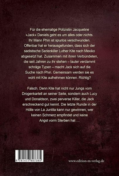 Falsch. Denn Kite hat nicht nur Jungs vom Drogenkartell an seiner Seite, sondern auch Lucy und Donaldson, zwei perverse Killer, die Jack erschreckend gut kennt. Die letzte Runde in der Hölle von La Juntita kann nur gewinnen, wer keinen Schmerz empfindet und keine Angst vorm Sterben hat ...