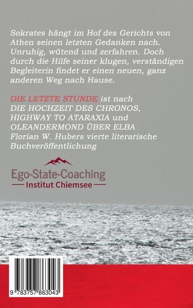 Sokrates hängt im Hof des Gerichts von Athen seinen letzten Gedanken nach. Unruhig, wütend und zerfahren. Doch durch die Hilfe seiner klugen, verständigen Begleiterin findet er einen neuen, ganz anderen Weg nach Hause. Eine literarische Reise durch die Welt der Ego-State-Therapie. Ein Buch nicht nur für Coaches, Therapeuten und Klienten."Die letzte Stunde" ist nach "Die Hochzeit des Chronos", "Highway to Ataraxia" und "Oleandermond über Elba" Florian W. Hubers vierte literarische Buchveröffentlichung