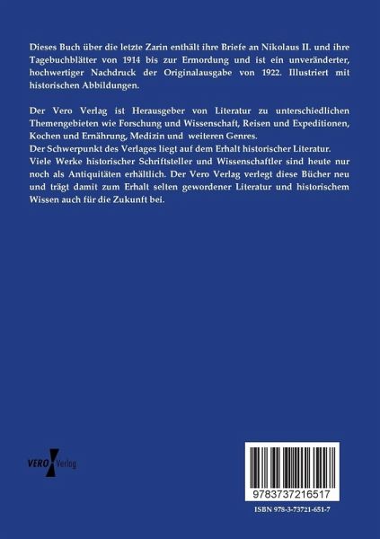 Dieses Buch über die letzte Zarin enthält ihre Briefe an Nikolaus II. und ihre Tagebuchblätter von 1914 bis zur Ermordung und ist ein unveränderter, hochwertiger Nachdruck der Originalausgabe von 1922. Illustriert mit historischen Abbildungen.