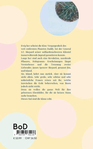 Ewig her scheint die Klon-Vergangenheit des weit entfernten Planeten Daddy, bei der General S.T. Shepard seiner milliardenschweren Klientel immerwährende Jugend garantieren konnte. Lange her sind auch eine Revolution, mordende Pflanzen, Hologramm-Erscheinungen längst Verstorbener und die Trennung zweier Liebender, James Spencer Shepard, genannt Jim, und Island. Sie, Island, kehrt nun zurück. Aber sie kommt nicht allein. Sehr große, sehr schöne und sehr unheimliche Frauen reisen mit ihr, welche inzwischen die Erde beherrschen, was ihnen jedoch nicht reicht. Denn sie wollen die ganze Welt für ihre geborenen Ebenbilder, für die sie keinen Mann mehr brauchen. Dieses Mal sind die Klone echt.
