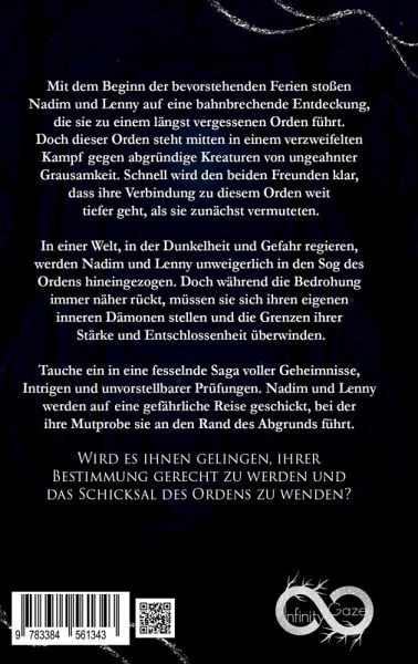 Mit dem Beginn der bevorstehenden Ferien stoßen Nadim und Lenny auf eine bahnbrechende Entdeckung, die sie zu einem längst vergessenen Orden führt. Doch dieser Orden steht mitten in einem verzweifelten Kampf gegen abgründige Kreaturen von ungeahnter Grausamkeit. Schnell wird den beiden Freunden klar, dass ihre Verbindung zu diesem Orden weit tiefer geht, als sie zunächst vermuteten.In einer Welt, in der Dunkelheit und Gefahr regieren, werden Nadim und Lenny unweigerlich in den Sog des Ordens hineingezogen. Doch während die Bedrohung immer näher rückt, müssen sie sich ihren eigenen inneren Dämonen stellen und die Grenzen ihrer Stärke und Entschlossenheit überwinden.Tauche ein in eine fesselnde Saga voller Geheimnisse, Intrigen und unvorstellbarer Prüfungen. Nadim und Lenny werden auf eine gefährliche Reise geschickt, bei der ihre Mutprobe sie an den Rand des Abgrunds führt.Wird es ihnen gelingen, ihrer Bestimmung gerecht zu werden und das Schicksal des Ordens zu wenden?