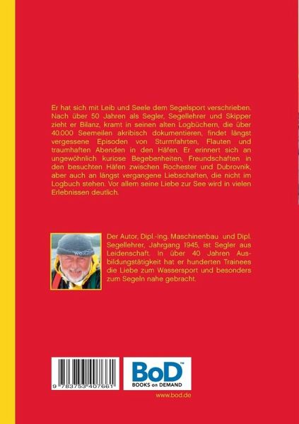 Er hat sich mit Leib und Seele dem Segelsport verschrieben. Nach über 50 Jahren als Segler, Segellehrer und Skipper zieht er Bilanz, kramt in seinen alten Logbüchern, die über 40.000 Seemeilen akribisch dokumentieren, findet längst vergessene Episoden von Sturmfahrten, Flauten und traumhaften Abenden in den Häfen. Er erinnert sich an ungewöhnlich kuriose Begebenheiten, Freundschaften in den besuchten Häfen zwischen Rochester und Dubrovnik, aber auch an längst vergangene Liebschaften, die nicht im Logbuch stehen. Vor allem seine Liebe zur See wird in vielen Erlebnissen deutlich.