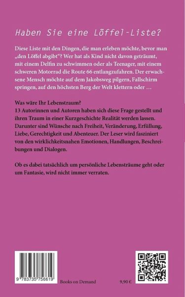 Das Zitat am Beginn des Buches von…mehrDreizehn Geschichten von verschiedenen Autoren zum Thema, was möchte ich gemacht haben, bevor ich den Löffel abgebe, zusammen getragen von Manu Wirtz. Eine gute Idee für diese Anthologie, denn bei dreizehn Autoren kommen so viele unterschiedliche Lebensträume zusammen. Ob diese immer "gelebt" wurden, oder auch mal nur der Fantasie entsprungen sind bleibt offen.