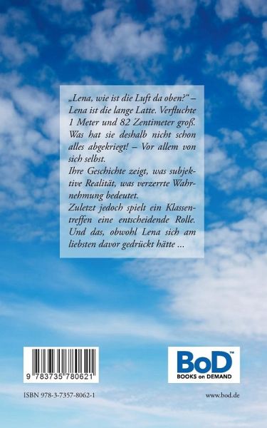 sie eine Art Freak wäre, nur, weil sie etwas größer ist, als die Durchschnittsfrau. Doch wäre es…mehrLesen wir uns so in die Geschichte ein und verfolgen Lenas Werdegang, so wird schnell klar: Lena ist eigentlich ziemlich arm dran. Nicht nur, dass sie sich mit 1,82 m Körpergröße durch die Welt schlagen muss, sie wird auch noch dafür gehänselt und die Menschen behandeln sie schlichtweg so, als ob sie eine Art Freak wäre, nur, weil sie etwas größer ist, als die Durchschnittsfrau. Doch wäre es alleine ihre Körpergröße, wäre Lena vermutlich nicht so unglücklich. Ihre Eltern meckern ständig an ihr herum, weil sie - o graus - nach ihrem BWL Studium nicht gleich eine Anstellung gesucht hat, sondern sich lieber etwas Zeit lassen wollte, um den richtigen Arbeitsplatz zu finden und ihr ungeliebter Schwager Manfred mischt sich sowieso in alle Angelegenheiten ein, die ihn nichts angehen. Doch ein (oder auch mehrere) übel kommen meistens nicht alleine und so wird Lenas Übel noch von ihrer "besten" Freundin Verena gekrönt, die mich als Leser manchmal so sehr zur Weißglut brachte, dass ich am liebsten ins Buch geklettert wäre, um sie mal ordentlich durchzuschütteln. Verena ist unerträglich, herrisch, arrogant aber vor allem eines: unsagbar egoistisch. Lena ist das genaue Gegenteil von Mensch, sie ist aufopferungsvoll, nett, absolut sympathisch und ihr Selbstbewusst sein muss sie eher noch suchen, als dass sie es offen zur Schau trägt. Man kann sich richtiggehend in die Rolle dieser Frau hineinversetzen, die nicht nur ein kleines, sondern wortwörtlich ein ganz großes Problem hat - nämlich sich selbst.