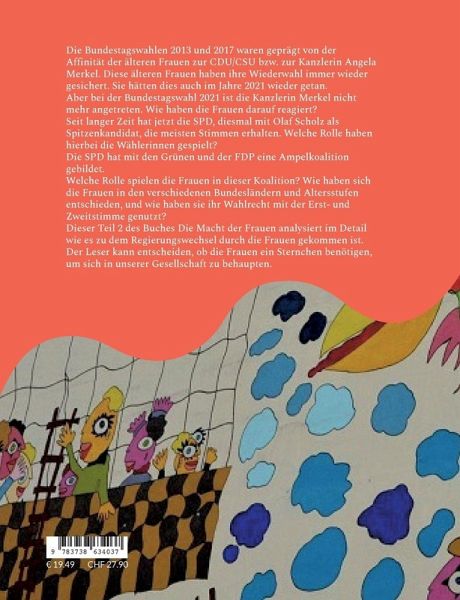 Die Bundestagswahlen 2013 und 2027 waren geprägt von der Affinität der älteren Frauen zur CDU/CSU bzw. zur Kanzlerin Angela Merkel. Diese älteren Frauen haben ihre Wiederwahl immer wieder gesichert. Sie hätten dies auch im Jahre 2021 wieder getan. Aber bei der Bundestagswahl 2021 ist die Kanzlerin Merkel nicht mehr angetreten. Wie haben die Frauen darauf reagiert?Seit langer Zeit hat jetzt die SPD, diesmal mit Olaf Scholz als Spitzenkandidat, die meisten Stimmen erhalten. Welche Rolle haben hierbei die Wählerinnen gespielt?Die SPD hat mit den Grünen und der FDP eine Ampelkoalition gebildet und muss damit eine Wählerschaft mit sehr unterschiedlichen Interessen zufriedenstellen.Welche Rolle spielen die Frauen in dieser Koalition? Wie haben sich die Frauen in den verschiedenen Bundesländern und Altersstufen entschieden, und wie haben sie ihr Wahlrecht mit der Erst- und Zweitstimme genutzt?Dieser Teil 2 des Buches Die Macht der Frauen analysiert im Detail wie es zu dem Regierungswechsel durch die Frauen gekommen ist.Der Leser kann entscheiden, ob die Frauen ein Sternchen benötigen, um sich in unserer Gesellschaft zu behaupten.