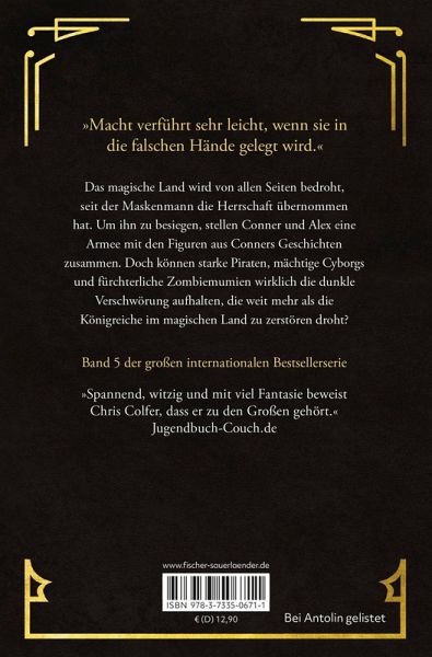 Das magische Land wird von allen Seiten bedroht, seit der maskierte Mann hier die Herrschaft übernommen hat. Um ihn zu besiegen, stellen Conner und Alex eine Armee mit den Figuren aus Conners Geschichten zusammen. Doch auch starke Piraten, mächtige Cyborgs und fürchterliche Zombies können den Zwillingen kaum helfen, das große Unheil zu verhindern, das nicht nur das magische Land, sondern die Anderswelt heimzusuchen droht ...