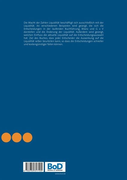 Die Macht der Zahlen Liquidität beschäftigt sich ausschließlich mit der Liquidität. An verschiedenen Beispielen wird gezeigt, die sich die Entscheidungen in der laufenden Buchführung, Bilanz und G + V darstellen und die Änderung der Liquidität. Außerdem wird gezeigt, welchen Einfluss die aktuelle Liquidität auf die Entscheidungsauswahl hat. Ziel des Buches, dass jeder Entscheider die Auswirkung auf die Liquidität selber beurteilen kann, so dass die Entscheidungen schneller und kostengünstiger fallen können.