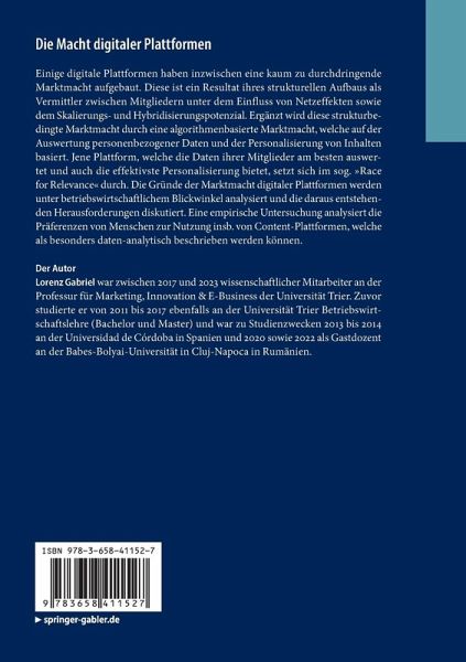 Einige digitale Plattformen haben inzwischen eine kaum zu durchdringende Marktmacht aufgebaut. Diese ist ein Resultat ihres strukturellen Aufbaus als Vermittler zwischen Mitgliedern unter dem Einfluss von Netzeffekten sowie dem Skalierungs- und Hybridisierungspotenzial. Ergänzt wird diese strukturbedingte Marktmacht durch eine algorithmenbasierte Marktmacht, welche auf der Auswertung personenbezogener Daten und der Personalisierung von Inhalten basiert. Jene Plattform, welche die Daten ihrer Mitglieder am besten auswertet und auch die effektivste Personalisierung bietet, setzt sich im sog. »Race for Relevance« durch. Die Gründe der Marktmacht digitaler Plattformen werden unter betriebswirtschaftlichem Blickwinkel analysiert und die daraus entstehenden Herausforderungen diskutiert. Eine empirische Untersuchung analysiert die Präferenzen von Menschen zur Nutzung insb. von Content-Plattformen, welche als besonders daten-analytisch beschrieben werden können.