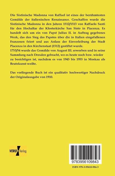Die Sixtinische Madonna von Raffael ist eines der berühmtesten Gemälde der italienischen Renaissance. Geschaffen wurde die Sixtinische Madonna in den Jahren 1512/1513 von Raffaelo Santi für den Hochaltar der Klosterkirche San Sisto in Piacenza. Es handelt sich um ein von Papst Julius II. in Auftrag gegebenes Werk, das den Sieg des Papstes über die in Italien eingefallenen Franzosen feiert und aus Anlass der Einverleibung der Stadt Piacenza in den Kirchenstaat (1512) gestiftet wurde.