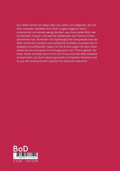 Nur selten lernen wir etwas über das Leben von Indigenen, die mit ihrer sexuellen Identität nicht einer vorgeschlagenen Norm entsprechen und wissen wenig darüber, was ihnen widerfährt, wie sie kämpfen müssen und welchen Stellenwert das Thema in ihren Gemeinden hat. Verwoben mit mythologischen Interpretationen der Welt, verstrickt in andere sozio-politische Konflikte, erschwert durch doppelte Unsichtbarkeit, haben sie ihre Erfahrungen mit dem Autor dieses Buches auf seinen Forschungsreisen zum Thema geteilt. Der Autor Edson Hurtado hat in Form von Prosa und Interview, teilweise anonymisiert, das Buch daraus gemacht und Swintha Danielsen hat es aus dem bolivianischen Spanisch ins Deutsche übersetzt.