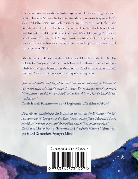 In diesem Buch findest du wertvolle Impulse und Unterstützung für die außergewöhnliche Zeit um die Geburt. Du erfährst, was eine magische, kraftvolle und selbstbestimmte Geburtserfahrung ausmacht. Eine Geburt, die dich stärkt und deinem Kind einen wundervollen Start ins Leben schenkt. Eine Initiation in deine weibliche Kraft und Größe. Einzigartige Meditationen, kraftvolle Rituale und Übungen sowie inspirierende Geburtsgeschichten von uns und 7 anderen Frauen vertiefen das praxisnahe Wissen auf eine völlig neue Weise. Für alle Frauen, die spüren, dass Geburt so viel mehr ist als ein rein physiologischer Vorgang, und die Lust haben, sich während ihrer Schwangerschaft in einer ganz besonderen Weise auf ihr Kind vorzubereiten oder die mit ihrer Arbeit Frauen in dieser wichtigen Zeit begleiten.