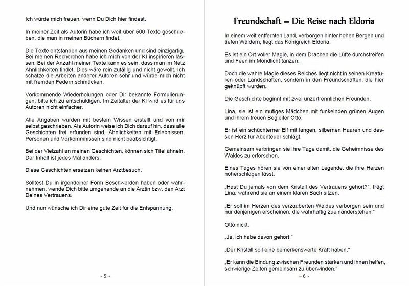 Wie tief ist deine Verbindung zu den Menschen, die dir am Herzen liegen?Freundschaft ist eine der kostbarsten Gaben des Lebens - sie gibt uns Halt, Freude und Vertrauen. Doch in einer Welt voller Hektik und Verpflichtungen bleibt oft wenig Raum, diese wertvollen Verbindungen bewusst zu pflegen und zu vertiefen.Dieses Buch lädt dich auf eine meditative Reise ein, die dein Herz für die Kraft der Freundschaft öffnet und dir hilft, bestehende Beziehungen zu stärken oder neue Verbindungen auf eine tiefere Ebene zu bringen.Mit 30 einzigartigen Meditationen und Fantasiereisen begleitet dich dieses Buch durch verschiedene Facetten der Freundschaft und ist eine Brücke zu mehr Nähe, Vertrauen und Harmonie. Manchmal verschmelzen beide Techniken miteinander._ Erlebe inspirierende Fantasiereisen - von magischen Orten wie Eldoria bis hin zur "Landschaft der Freundschaft"._ Entdecke die vielen Formen der Freundschaft - zwischen Männern, Frauen, Eltern und Kindern, Nachbarn oder sogar mit Tieren._ Fühle die Verbundenheit - sei es bei einem ausgelassenen Frauenabend, einem tiefgründigen Stammtischgespräch oder einem symbolischen Freundschaftsritual._ Lasse die Kraft der Freundschaft in deinem Leben wachsen - mit Meditationen, die Nähe, Vertrauen und Harmonie fördern.Für wen ist dieses Buch?_ Für alle, die ihre Freundschaften bewusst pflegen und vertiefen möchten_ Für Menschen, die neue Verbindungen aufbauen und sich für echte Nähe öffnen wollen_ Für Meditationseinsteiger und -erfahrene, die Freundschaft auf einer neuen Ebene erleben möchten_ Für alle, die auf der Suche nach innerer Harmonie, Geborgenheit und liebevollen Beziehungen sindFreundschaft ist wie ein sicherer Hafen in stürmischen Zeiten. Sie schenkt uns nicht nur Freude und Unterstützung, sondern auch die Möglichkeit, in stressigen Phasen zu entspannen und einfach mal abzuschalten. Wenn wir Zeit mit Freunden verbringen, können wir den Alltagsstress hinter uns lassen und in eine Welt des Vertrauens und der Entspannung eintauchen.In der Gesellschaft von Freunden fühlen wir uns frei, wir selbst zu sein. Ob bei einem gemütlichen Filmabend, einem Ausflug in die Natur oder einfach beim Kaffeetrinken und Reden. All diese Momente fördern unser Wohlbefinden. Sie helfen uns, unsere Sorgen zu vergessen und im Hier und Jetzt zu leben.Ein weiteres besonders effektives Mittel zur Entspannung ist das Lachen. Mit Freunden zu lachen ist nicht nur befreiend, sondern stärkt auch die Bindung und unser emotionales Wohlgefühl. Daher ist es wichtig, regelmäßig Zeit mit den Menschen zu verbringen, die uns guttun und uns zum Lächeln bringen.Immer wenn Du das Gefühl hast, dass der Druck steigt, erinnere Dich daran, dass Deine Freunde da sind, um mit Dir diese besonderen Momente zu teilen.Du kannst die Meditationen aus diesem Buch auf 3 Arten nutzen:_ Du liest die Texte einem anderen oder mehreren Menschen vor, damit diese eine geführte Meditation genießen können._ Du liest die Texte für Dich selbst und machst an den Stellen immer kleine Pausen, damit Deine Fantasie auch genug Zeit hat, sich alles vorzustellen._ Du liest die Texte, während du mit einem Aufnahmegerät Deine Stimme aufnimmst. Das kann dein Handy sein, ein Diktiergerät oder ein anderes Aufnahmegerät. So liest Du erst die Entspannungsgeschichte und kannst sie Dir hinterher mit Deiner eigenen Stimme öfters anhören und Dich dann mit geschlossenen Augen durch Deine Fantasie leiten lassen.Das Buchformat in DIN A5 ist handlich und kompakt, so dass es jederzeit mitgenommen werden kann.Lass Dich auf diese magische Reise der Freundschaft ein und entdecke, wie Meditation Dein Herz für echte Verbundenheit öffnet.