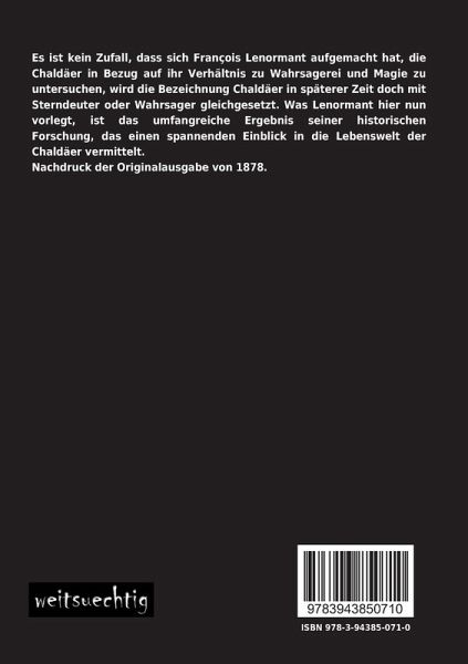 Es ist kein Zufall, dass sich François Lenormant aufgemacht hat, die Chaldäer in Bezug auf ihr Verhältnis zu Wahrsagerei und Magie zu untersuchen, wird die Bezeichnung Chaldäer in späterer Zeit doch mit Sterndeuter oder Wahrsager gleichgesetzt. Was Lenormant hier nun vorlegt, ist das umfangreiche Ergebnis seiner historischen Forschung, das einen spannenden Einblick in die Lebenswelt der Chaldäer vermittelt.