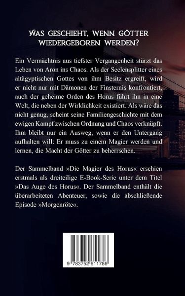 Was geschieht, wenn Götter wiedergeboren werden?Ein Vermächtnis aus tiefster Vergangenheit stürzt das Leben von Aron ins Chaos. Als der Seelensplitter eines altägyptischen Gottes von ihm Besitz ergreift, wird er nicht nur mit Dämonen der Finsternis konfrontiert, auch der geheime Orden des Horus führt ihn in eine Welt, die neben der Wirklichkeit existiert. Als wäre das nicht genug, scheint seine Familiengeschichte mit dem ewigen Kampf zwischen Ordnung und Chaos verknüpft. Ihm bleibt nur ein Ausweg, wenn er den Untergang aufhalten will: Er muss zu einem Magier werden und lernen, die Macht der Götter zu beherrschen.Der Sammelband »Die Magier des Horus« erschien erstmals als dreiteilige E-Book-Serie unter dem Titel »Das Auge des Horus«. Der Sammelband enthält die überarbeiteten Abenteuer, sowie die abschließende Episode »Morgenröte«.