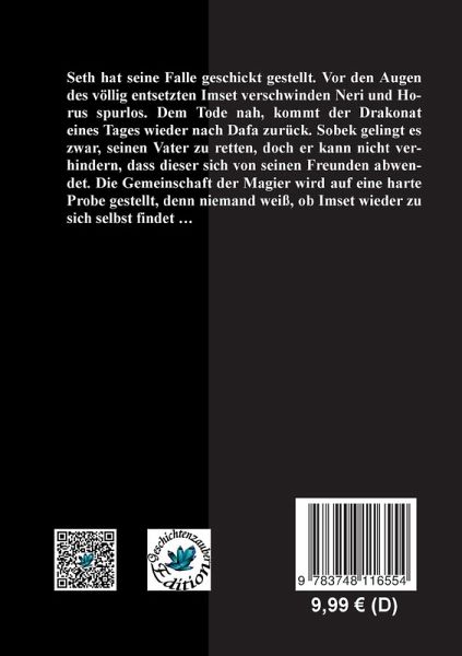 Seth hat seine Falle geschickt gestellt. Vor den Augen des völlig entsetzten Imset verschwinden Neri und Horus spurlos. Dem Tode nah, kommt der Drakonat eines Tages wieder nach Dafa zurück. Sobek gelingt es zwar, seinen Vater zu retten, doch er kann nicht verhindern, dass dieser sich von seinen Freunden abwendet. Die Gemeinschaft der Magier wird auf eine harte Probe gestellt, denn niemand weiß, ob Imset wieder zu sich selbst findet ...
