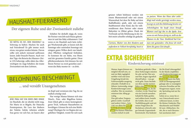 Durchwachte Nächte, Windelschlachten, Blähungen und die Schwiegereltern vor der Tür ... Viele Frauen, die zum ersten Mal Mutter werden, sind geschafft vom neuen Leben mit Baby. Die Mama-Trickkiste schafft Abhilfe: Sie enthält über 200 Ideen, Tipps und Tricks, um das aufregende erste Jahr gelassener und fröhlicher zu meistern. Alle wichtigen Bereiche rund um das neue Leben zu dritt werden angesprochen: Babypflege, Babyschlaf, Stillen und Füttern, clevere Haushaltshelfer - aber auch Ideen, um sich Freiraum als Frau und Partnerin zu erhalten. Zusätzlich finden Sie über 30 geniale Anti-Stress-Tipps für junge Mütter.