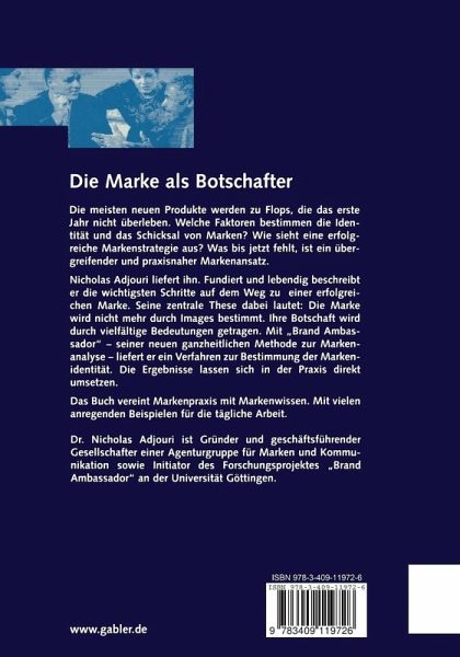 Die meisten neuen Produkte werden zu Flops, die das erste Jahr nicht überleben. Welche Faktoren bestimmen die Identität und das Schicksal von Marken? Wie sieht eine erfolgreiche Markenstrategie aus? Was bis jetzt fehlt, ist ein übergreifender und praxisnaher Markenansatz. Diesen liefert Nicholas Adjouri. Erstmals zeigt er die Marke als Botschafter zwischen Unternehmen und Kunden. Fundiert, lebendig und praxisnah beschreibt er die wichtigsten Schritte auf dem Weg zu einer erfolgreichen Marke. Mit seinem neuen Ansatz zur Markenanalyse - Brand Ambassador -, liefert er ein Verfahren zur Bestimmung der Markenidentität. Die Ergebnisse lassen sich direkt in der Praxis umsetzen.