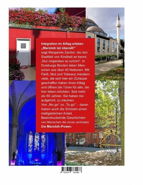Die Marxloh-Power - Integration im Alltag erlebenGeschichten zum Staunen und Schmunzeln, die vielleicht auch nachdenklich machen.Geschichten über das Ankommen und das Türen-öffnen. Aus dem Alltag. Erzählt von Menschen in Duisburg-Marxloh mit unterschiedlichsten Berufen, darunter Stahlkocher, SchulhausmeisterIn, InhaberInnen von Brautmodengeschäften und Reformhaus, Café, LehrerInnen, Lötmeister, Hotelbetreiber und viele andere. Sie alle meistern mit Fleiß, und Mut, Toleranz und Humor ihren Alltag und öffnen die Türen für alle, die hier leben möchten. Seit mehr als 60 Jahren. Sie haben nie aufgehört, zu träumen. Der Stadtteil verwandelt sich: von "No-go" zu "To-go" - daran haben auch die Schulen einen maßgeblichen Anteil.Beeindruckende Geschichten von Menschen, die eines verbindet: Die Marxloh-Power."Marxloh ist überall!" sagt Margarete Zander, die den Stadtteil von Kindheit an kennt. "Nur nirgendwo so schön!" I