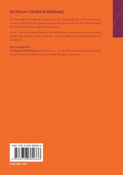 Merkwürdig, seltsam, anders, langweilig? Bundestagswahlkampf 2021.- "Never Was There More to Do." Use of Vaguely Formulated Statements in the 2021 German National Election Campaign and Their Potential Effects.- Postdemokratischer Wahlkampf? Eine qualitative Inhaltsanalyse der Plakatkampagnen.- Politische Werbung auf Social Media im Bundestagswahlkampf 2021.- Wahlkampf in der Twitter-Arena: Twitter-Kommunikation von Spitzenpolitiker*innen im Bundestagswahlkampf 2021.- Visuelle Personalisierung des Negative Campaigning: Eine Konzeptualisierung anlässlich des Wahlkampfes auf Instagram.- Ein Wahlkampf wie kein anderer? Die Presseberichterstattung zur Bundestagswahl 2021 im Langzeitvergleich.- Alles bleibt anders. Die Fernsehberichterstattung über Baerbock, Scholz und Laschet.- Von Staatsmännern und bürgernahen Wahlkämpfer*innen. Eine visuelle Framing-Analyse der TV-Berichterstattung über die Kanzlerkandidat*innen Olaf Scholz, Armin Laschet und Annalena Baerbock im Bundestagswahlkampf 2021.- Inhaltsleere oder informative TV-Formate?! Eine empirische Analyse zu den Themen und Kommunikationsstrategien bei den TV-Triellen der Bundestagswahl 2021.- Vielfalt bei Google? Vielzahl, Ausgewogenheit und Verschiedenheit wahlbezogener Suchergebnisse.- Prekäre Mobilisierung und defizitäre Kommunikation. Was von der Kampagne bei wem (nicht) ankam.