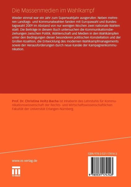 Wieder einmal war ein Jahr zum Superwahljahr ausgerufen: Neben mehreren Landtags- und Kommunalwahlen fanden mit Europawahl und Bundestagswahl 2009 im Abstand von nur wenigen Wochen zwei nationale Wahlen statt. Die Beiträge in diesem Buch untersuchen die Kommunikationsbeziehungen zwischen Politik, Wählerschaft und Medien in den Wahlkämpfen unter den Bedingungen dieser besonderen politischen Konstellation und der Großen Koalition, die Entwicklung des modernen Wahlkampfmanagements sowie der Herausforderungen durch neue Kanäle der Kampagnenkommunikation