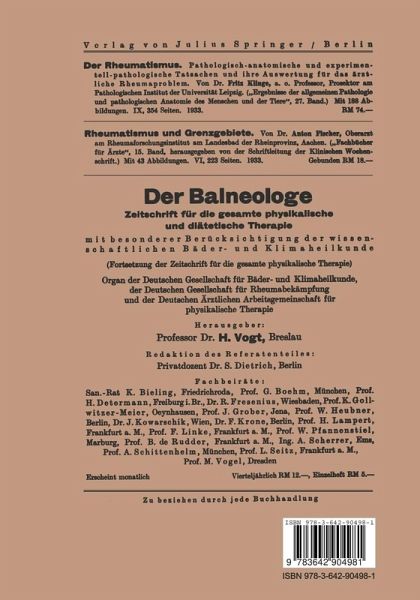 Dieser Buchtitel ist Teil des Digitalisierungsprojekts Springer Book Archives mit Publikationen, die seit den Anfängen des Verlags von 1842 erschienen sind. Der Verlag stellt mit diesem Archiv Quellen für die historische wie auch die disziplingeschichtliche Forschung zur Verfügung, die jeweils im historischen Kontext betrachtet werden müssen. Dieser Titel erschien in der Zeit vor 1945 und wird daher in seiner zeittypischen politisch-ideologischen Ausrichtung vom Verlag nicht beworben.