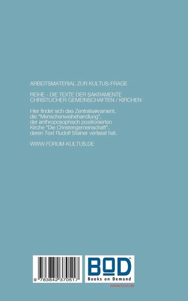 Arbeitsmaterial zur Kultus-FrageReihe - Die Texte der Sakramente der Gemeinschaften / KirchenHier findet sich das Zentralsakrament - die "Menschenweihehandlung" - (mit allen Episteln) der anthroposophisch positionierten Kirche "Die Christengemeinschaft", deren Text von Rudolf Steiner verfasst wurde.