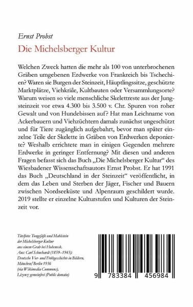Welchen Zweck hatten die mehr als 100 von unterbrochenen Gräben umgebenen Erdwerke von Frankreich bis Tschechien? Waren sie Burgen der Steinzeit, Häuptlingssitze, geschützte Marktplätze, Viehkräle, Kultbauten oder Versammlungsorte? Warum weisen so viele menschliche Skelettreste aus der Jungsteinzeit vor etwa 4.300 bis 3.500 v. Chr. Spuren von roher Gewalt und von Hundebissen auf? Hat man Leichname von Ackerbauern und Viehzüchtern damals zunächst ungeschützt und für Tiere zugänglich aufgebahrt, bevor man später einzelne Teile der Skelette in Gräben von Erdwerken deponierte? Weshalb errichtete man in einigen Gegenden mehrere Erdwerke in geringer Entfernung? Mit diesen und anderen Fragen befasst sich das Buch "Die Michelsberger Kultur" des Wiesbadener Wissenschaftsautors Ernst Probst. Er hat 1991 das Buch "Deutschland in der Steinzeit" veröffentlicht, in dem das Leben und Sterben der Jäger, Fischer und Bauern zwischen Nordseeküste und Alpenraum geschildert wurde. 2019 stellte er einzelne Kulturstufen und Kulturen der Steinzeit vor.