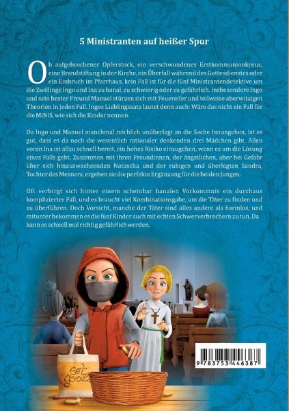 Ob aufgebrochener Opferstock, ein verschwundenes Erstkommunionkreuz, eine Brandstiftung in der Kirche, ein Überfall während des Gottesdienstes oder ein Einbruch im Pfarrhaus, kein Fall ist für die fünf Ministrantendetektive um die Zwillinge Ingo und Ina zu banal, zu schwierig oder zu gefährlich. Insbesondere Ingo und sein bester Freund Manuel stürzen sich mit Feuereifer und teilweise aberwitzigen Theorien in jeden Fall. Ingos Lieblingssatz lautet denn auch: Wäre das nicht ein Fall für die MiNiS, wie sich die fünfköpfige Detektiv-Truppe nennt, denn in diesem Namen sind nicht nur die Anfangsbuchstaben ihrer Vornamen enthalten, sondern sie bezeichnen auch das, was sie sind, Minis, also Ministranten. Da Ingo und Manuel manchmal reichlich unüberlegt an die Sache herangehen, ist es gut, dass es da auch noch die wesentlich rationaler denkenden drei Mädchen gibt, allen voran Ina, die energische Zwillingsschwester von Ingo, die nur selten ein gutes Haar an ihrem Bruder lässt und allzu schnell bereit ist, ein hohes Risiko einzugehen, wenn es um die Lösung eines Falls geht. Zusammen mit ihren Freundinnen, der eigentlich ängstlichen, aber bei Gefahr doch löwenherzigen Natascha und der ruhigen und überlegten Sandra, Tochter des Messmers, ergeben sie die perfekte Ergänzung für die beiden Jungen. Oft verbirgt sich hinter einem scheinbar banalen Vorkommnis ein durchaus komplizierter Fall, und es braucht viel Kombinationsgabe, um die Täter zu finden und zu überführen. Doch Vorsicht, manche der Täter sind alles andere als harmlos, und mitunter bekommen es die fünf Kinder auch mit echten Schwerverbrechern zu tun. Da kann es schnell mal richtig gefährlich werden, wenn die Jugendlichen mal wieder allzu wagemutig sind.