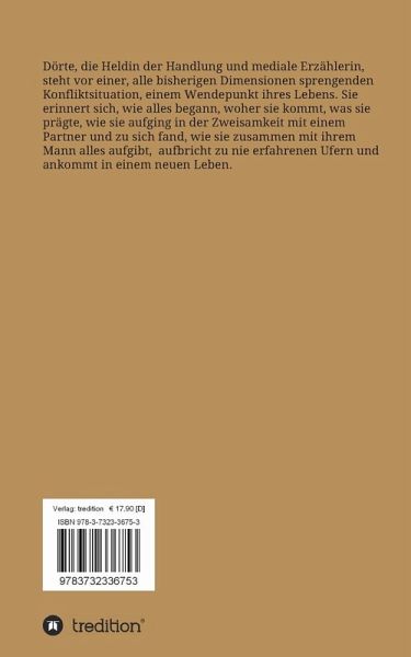 Dörte, die Heldin der Handlung und mediale Erzählerin, steht vor einer, alle bisherigen Dimensionen sprengenden Konfliktsituation, einem Wendepunkt ihres Lebens. Sie erinnert sich, wie alles begann, woher sie kommt, was sie prägte, wie sie aufging in der Zweisamkeit mit einem Partner und zu sich fand, wie sie zusammen mit ihrem Mann alles aufgibt, aufbricht zu nie erfahrenen Ufern und ankommt in einem neuen Leben.
