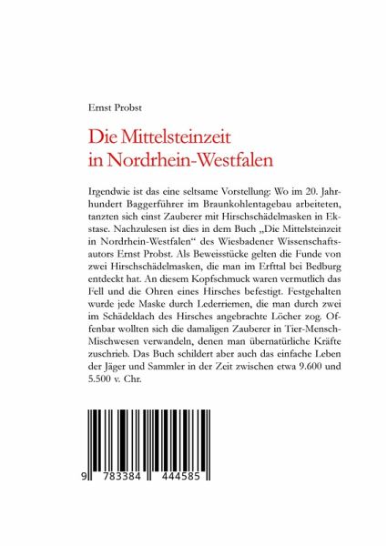 Irgendwie ist das eine seltsame Vorstellung: Wo im 20. Jahrhundert Baggerführer im Braunkohlentagebau arbeiteten, tanzten sich einst Zauberer mit Hirschschädelmasken in Ekstase. Nachzulesen ist dies in dem Buch "Die Mittelsteinzeit in Nordrhein-Westfalen" des Wiesbadener Wissenschaftsautors Ernst Probst. Als Beweisstücke gelten die Funde von zwei Hirschschädelmasken, die man im Erfttal bei Bedburg entdeckt hat. An diesem Kopfschmuck waren vermutlich das Fell und die Ohren eines Hirsches befestigt. Festgehalten wurde jede Maske durch Lederriemen, die man durch zwei im Schädeldach des Hirsches angebrachte Löcher zog. Offenbar wollten sich die damaligen Zauberer in Tier-Mensch-Mischwesen verwandeln, denen man übernatürliche Kräfte zuschrieb. Das Buch schildert aber auch das einfache Leben der Jäger und Sammler in der Zeit zwischen etwa 9.600 und 5.500 v. Chr.