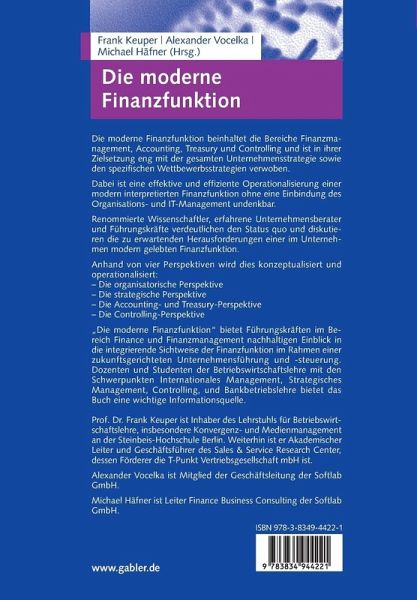 Die moderne Finanzfunktion beinhaltet die Bereiche Finanzmanagement, Accounting, Treasury und Controlling und ist in ihrer Zielsetzung eng mit der gesamten Unternehmensstrategie sowie den spezifischen Wettbewerbsstrategien verwoben. Dabei ist eine effektive und effiziente Operationalisierung einer modern interpretierten Finanzfunktion ohne eine Einbindung des Organisations- und IT-Management undenkbar. Renommierte Wissenschaftler, erfahrene Unternehmensberater und Führungskräfte verdeutlichen den Status quo und diskutieren die zu erwartenden Herausforderungen einer im Unternehmen modern gelebten Finanzfunktion. Anhand von vier Perspektiven wird dies konzeptualisiert und operationalisiert: - Die organisatorische Perspektive - Die strategische Perspektive - Die Accounting- und Treasury-Perspektive - Die Controlling-Perspektive "Die moderne Finanzfunktion" bietet Führungskräften im Bereich Finance und Finanzmanagement nachhaltigen Einblick in die integrierende Sichtweise der Finanzfunktion im Rahmen einer zukunftsgerichteten Unternehmensführung und -steuerung. Dozenten und Studenten der Betriebswirtschaftslehre mit den Schwerpunkten Internationales Management, Strategisches Management, Controlling und Bankbetriebslehre bietet das Buch eine wichtige Informationsquelle.