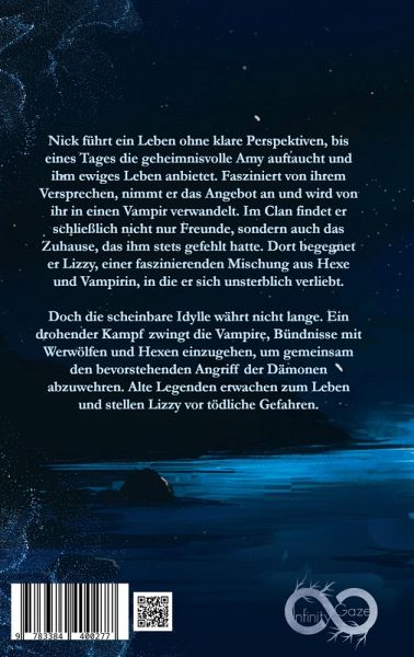 Nick führt ein Leben ohne klare Perspektiven, bis eines Tages die geheimnisvolle Amy auftaucht und ihm ewiges Leben anbietet. Fasziniert von ihrem Versprechen, nimmt er das Angebot an und wird von ihr in einen Vampir verwandelt. Im Clan findet er schließlich nicht nur Freunde, sondern auch das Zuhause, das ihm stets gefehlt hatte. Dort begegnet er Lizzy, einer faszinierenden Mischung aus Hexe und Vampirin, in die er sich unsterblich verliebt. Doch die scheinbare Idylle währt nicht lange. Ein drohender Kampf zwingt die Vampire, Bündnisse mit Werwölfen und Hexen einzugehen, um gemeinsam den bevorstehenden Angriff der Dämonen abzuwehren. Alte Legenden erwachen zum Leben und stellen Lizzy vor tödliche Gefahren.