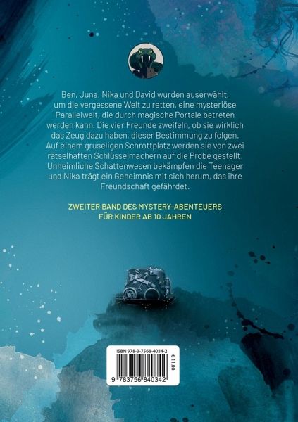 Ben, Juna, Nika und David wurden auserwählt, um die vergessene Welt zu retten, eine mysteriöse Parallelwelt, die durch magische Portale betreten werden kann. Die vier Freunde zweifeln, ob sie wirklich das Zeug dazu haben, dieser Bestimmung zu folgen. Auf einem gruseligen Schrottplatz werden sie von zwei rätselhaften Schlüsselmachern auf die Probe gestellt. Unheimliche Schattenwesen bekämpfen die Teenager und Nika trägt ein Geheimnis mit sich herum, das ihre Freundschaft gefährdet.Zweiter Band des Mystery-Abenteuers für Kinder ab 10 Jahren.Mit farbigen Illustrationen.QR-Code und Link zu Bonusmaterial: Buchtrailer, Einblick in die Dreharbeiten, zusätzliche Fotos, Infos zu den Darsteller_innen, Entstehung der Geschichte und vieles mehr!