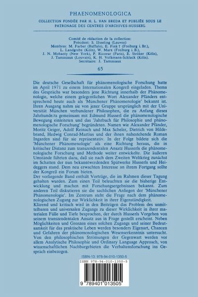 Phänomenologie und "wirkliche Wirklichkeit".- "Selbst Leibhaftig Gegeben." Reflexion einer phänomenologischen Formel nach Alexander Pfänder.- Die Antithese Freiburg-München in der Geschichte der Phänomenologie.- Die Verfehlung der Phänomene bei Edmund Husserl.- Abgeschlossene Wesenserkenntnis und offene Erfahrung.- Über die Möglichkeit einer Metaphysik. Die Antwort der "Münchener Phänomenologen" auf E. Husserls Transzendentalphilosophie.- Phänomenologie des Wollens und Ordinary Language Approach.- Die Wertphilosophie Dietrich von Hildebrands.- Edmund Husserl und Moritz Geiger.- Zum Lebenswerk von Roman Ingarden. Ontologie, Erkenntnistheorie und Methaphysik.- Trieb und Leidenschaft.- Nachwort der Herausgeber.