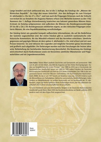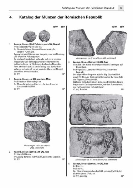 Lange bewährt und doch umfassend neu, das ist die 3. Auflage des Katalogs der "Münzen der Römischen Republik". Sie träge den neuen Untertitel "Von den Anfängen bis zum Prinzipat (4. Jahrhundert v. Chr. bis 27 v. Chr.), weil nun auch die Prägungen Octavians nach der Schlacht von Actium bis zur Annahme des Augustus- Namens erfasst sind. Weiterhin kommen zu den 1762 Nummern der 1. Auflage 2023 inzwischen neu bekannt gewordene Münzen hinzu. Erstmals im Katalog aufgenommen sind außerdem die Münzen des Bundesgenossenkrieges (91 bis 88 v. Chr.): Die Bundesgenossen emittierten eigene, an den römischen Prägungen orientierte Münzen, die eine Republiksammlung vervollständigen.Der Katalog bietet wie gewohnt kompakt aufbereitete Informationen, die auf die Bedürfnisse der Sammler zugeschnitten sind. Bei vielen Stücken gibt es zusätzlich numismatische oder historische Kommentare, die das Münzbild erläutern und das Verstehen erleichtern. Sämtliche gegossene und geprägte Münzen ab dem späten 4. Jahrhundert v. Chr. sind erfasst und mit zwei Preisen bewertet. Sie sind inklusive der Legenden und möglicher Varianten genau beschrieben und großteils auch abgebildet. Die Datierungen wurden nach den Forschungen der letzten Jahre unter Beibehaltung der bestehenden Nummerierung überarbeitet. Die Benutzung des Katalogs wird erleichtert durch Konkordanzen sowie ein Verzeichnis sämtlicher Münzmeister und Prägeautoritäten und ein Legendenverzeichnis.