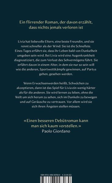 Livia hat liebevolle Eltern, eine beste Freundin, und sie rennt schneller als der Wind: Sie ist die Schnellste. Eines Tages erfährt sie, dass ihr Leben bald von Dunkelheit umgeben sein wird. Bei Livia wird eine Augenkrankheit diagnostiziert, die zum Verlust des Sehvermögens führt. Sie erfährt davon in einem Alter, in dem sie nur so sein will wie die anderen, Sportwettkämpfe gewinnen, auf Partys gehen, gesehen werden.
