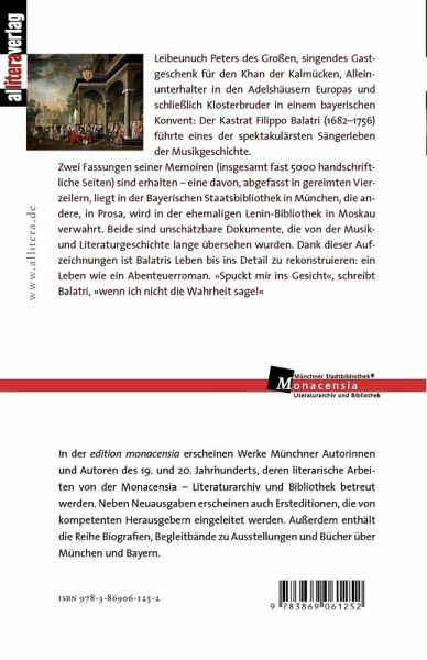 Leibeunuch Peters des Großen, singendes Gastgeschenk für den Khan der Kalmücken, Alleinunterhalter in den Adelshäusern Europas und schließlich Klosterbruder in einem bayerischen Konvent: Das Leben des Kastraten Filippo Balatri (1682 1756) ist eines des spektakulärsten, das einem Sänger je beschieden war.