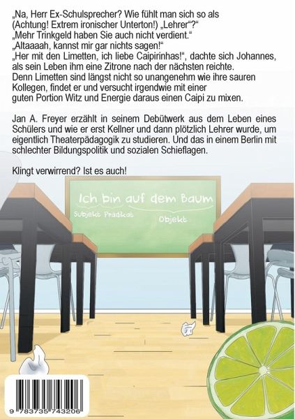 "Na, Herr Ex-Schulsprecher? Wie fühlt man sich so als (Achtung! Extrem ironischer Unterton!) "Lehrer"?""Mehr Trinkgeld haben Sie auch nicht verdient.""Altaaaah, kannst mir gar nichts sagen!""Her mit den Limetten, ich liebe Caipirinhas!", dachte sich Johannes, als sein Leben ihm eine Zitrone nach der nächsten reichte. Denn Limetten sind längst nicht so unangenehm wie ihre sauren Kollegen, findet er und versucht irgendwie mit einer guten Portion Witz und Energie daraus einen Caipi zu mixen.Jan A. Freyer erzählt in seinem Debütwerk aus dem Leben eines Schülers und wie er erst Kellner und dann plötzlich Lehrer wurde, um eigentlich Theaterpädagogik zu studieren. Und das in einem Berlin mit schlechter Bildungspolitik und sozialen Schieflagen.Klingt verwirrend? Ist es auch!