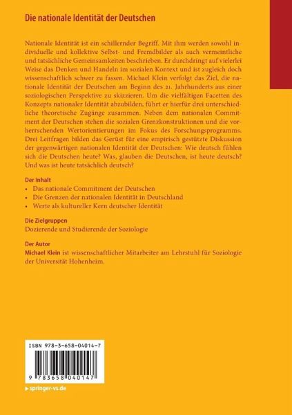 Nationale Identität ist ein schillernder Begriff. Mit ihm werden sowohl individuelle und kollektive Selbst- und Fremdbilder als auch vermeintliche und tatsächliche Gemeinsamkeiten beschrieben. Er durchdringt auf vielerlei Weise das Denken und Handeln im sozialen Kontext und ist zugleich doch wissenschaftlich schwer zu fassen. Michael Klein verfolgt das Ziel, die nationale Identität der Deutschen am Beginn des 21. Jahrhunderts aus einer soziologischen Perspektive zu skizzieren. Um die vielfältigen Facetten des Konzepts nationaler Identität abzubilden, führt er hierfür drei unterschiedliche theoretische Zugänge zusammen. Neben dem nationalen Commitment der Deutschen stehen die sozialen Grenzkonstruktionen und die vorherrschenden Wertorientierungen im Fokus des Forschungsprogramms. Drei Leitfragen bilden das Gerüst für eine empirisch gestützte Diskussion der gegenwärtigen nationalen Identität der Deutschen: Wie deutsch fühlen sich die Deutschen heute? Was, glauben die Deutschen, istheute deutsch? Und was ist heute tatsächlich deutsch?