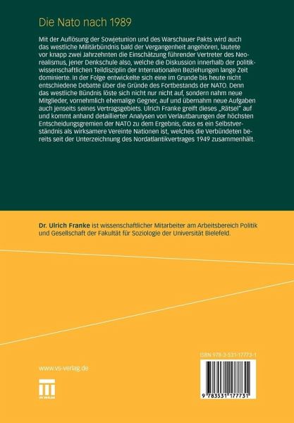 Mit der Auflösung der Sowjetunion und des Warschauer Pakts wird auch das westliche Militärbündnis bald der Vergangenheit angehören, lautete vor knapp zwei Jahrzehnten die Einschätzung führender Vertreter des Neorealismus, jener Denkschule also, welche die Diskussion innerhalb der politikwissenschaftlichen Teildisziplin der Internationalen Beziehungen lange Zeit dominierte. In der Folge entwickelte sich eine im Grunde bis heute nicht entschiedene Debatte über die Gründe des Fortbestands der NATO. Denn das westliche Bündnis löste sich nicht nur nicht auf, sondern nahm neue Mitglieder, vornehmlich ehemalige Gegner, auf und übernahm neue Aufgaben auch jenseits seines Vertragsgebiets. Ulrich Franke greift dieses "Rätsel" auf und kommt anhand detaillierter Analysen von Verlautbarungen der höchsten Entscheidungsgremien der NATO zu dem Ergebnis, dass es ein Selbstverständnis als wirksamere Vereinte Nationen ist, welches die Verbündeten bereits seit der Unterzeichnung des Nordatlantikvertrages 1949 zusammenhält.