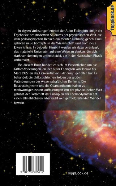 In diesen Vorlesungen erörtert der Autor Eddington einige der Ergebnisse des modernen Studiums der physikalischen Welt, die dem philosophischen Denken am meisten Nahrung geben. Dazu gehören neue Konzepte in der Wissenschaft und auch neue Erkenntnisse. In beiderlei Hinsicht werden wir dazu veranlasst, das materielle Universum auf eine Weise zu denken, die sich stark von derjenigen unterscheidet, die in der klassischen Physik vorherrscht.Bei diesem Buch handelt es sich im Wesentlichen um die Gifford-Vorlesungen, die der Autor Eddington von Januar bis März 1927 an der Universität von Edinburgh gehalten hat. Es behandelt die philosophischen Folgen der großen Veränderungen des wissenschaftlichen Denkens. Die Relativitätstheorie und die Quantentheorie haben zu merkwürdigen neuen Auffassungen von der physikalischen Welt geführt; der Fortschritt der Prinzipien der Thermodynamik hat einen allmählicheren, aber nicht weniger tiefgreifenden Wandel bewirkt.